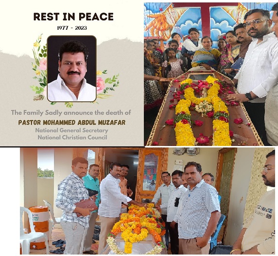 Dr. Sam Paul Founder President of NCC accompanied by National Vice President, Rev. Brighty Beulah, NCC LB Nagar Constituency President Bro. Daniel Reddy and several other office bearers of this committee of LB Nagar, Hyderabad, attended the funeral service and expressed solidarity to the bereaved family and Church members and reminisced the courageous leadership style of Bro. Muzafar. Speaking on the occasion his elder son Mr. Sameer said, that in his father he has seen a leader with so much faith and trust in the LORD and that the Church that his father planted will be continued into the future.